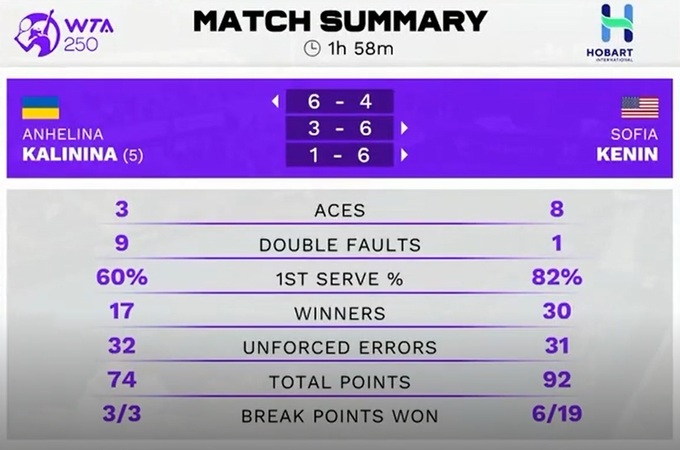 Ангелина Калинина (Украина) – София Кенин (США) – 6:4, 3:6, 1:6