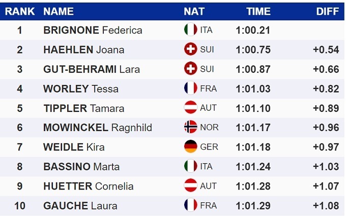Одна из топ-фавориток, итальянка Софья Годжа, сошла с дистанции, хотя на середине трассы показывала лучший график. Лидер Кубка мира, американка Микаэла Шиффрин, в Санкт-Антон не приехала.