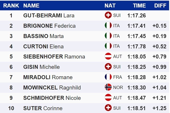 Швейцарская горнолыжница Лара Гут-Бехрами выиграла второй супергигант на этапе Кубка мира в австрийском Санкт-Антоне. Она опередила трех итальянок – вчерашнего победителя Федерику Бриньоне, Марту Бассино и Элену Куртони.