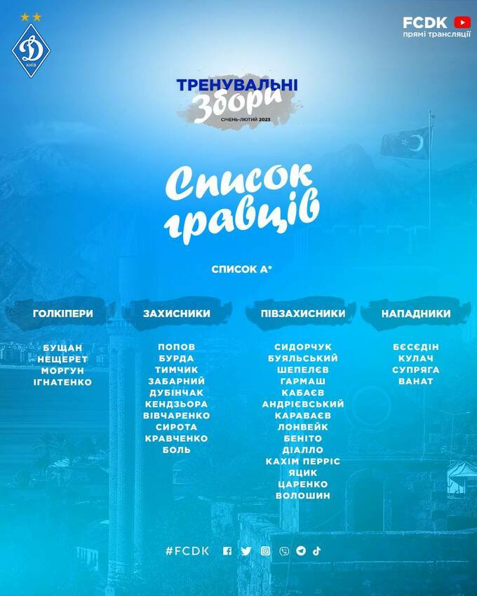 Состав основной команды «Динамо» на сборе в Турции: