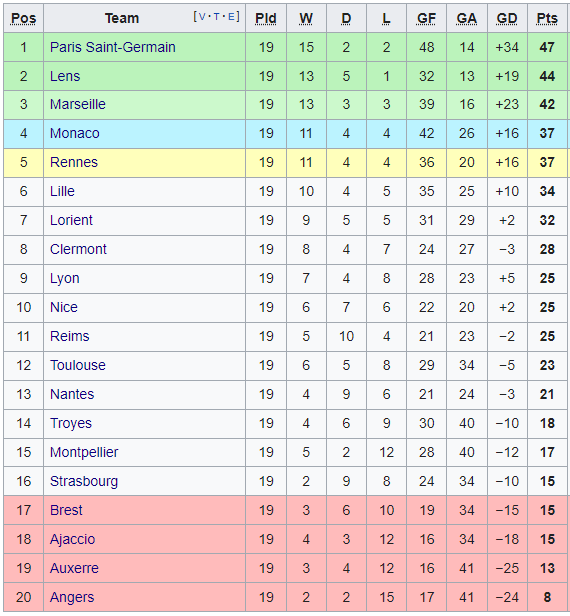 Турнирная таблица Лиги 1