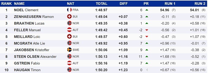 Компанию на подиуме Ноэлю составили швейцарец Рамон Ценхойзерн и норвежец Лукас Бротен.