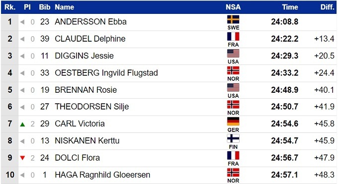 Шведская лыжница Эбба Андерссон выиграл гонку с раздельным стартом на 10 км свободным стилем на этапе Кубка мира во французском Ле-Русс. Она опередила хозяйку соревнований Дельфин Клодель и американку Джессику Диггинс.