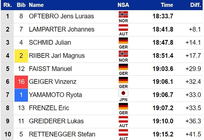 Норвежский двоеборец Йенс Лурос Офтебро выиграл первый этап многодневки в австрийском Зеефельде. Он опередил хозяина соревнований Йоханнеса Лампартера и немца Юлиана Шмида.