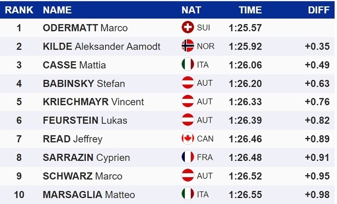 Лидер Кубка мира Марко Одерматт выиграл первый супергигант на этапе в итальянской Кортина д’Ампеццо. Швейцарец опередил своего главного соперника, норвежца Александера Омодта Килде, на 0,35 секунды. Топ-3 замкнул хозяин соревнований, итальянец Маттиа Кассе.