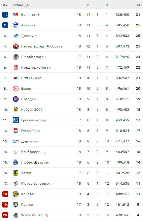 Во второй Бундеслиге «Мотор» имеет 5 побед, 1 ничью и 12 поражений. Запорожская команда набрала 11 очок и поднялась выше зоны вылета (17-е место среди 20 команд).