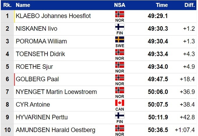 В мас-старті Клебо не можна привозити на фініш, бо буде першим. А друге та третє місця без норвежців. До цього й шлося.