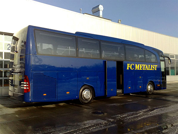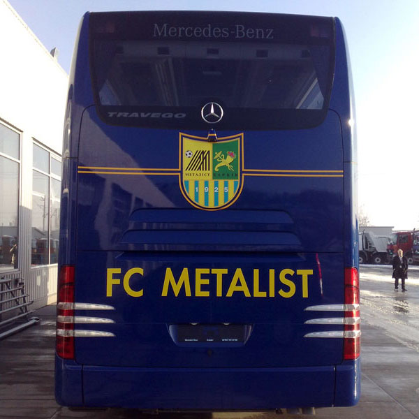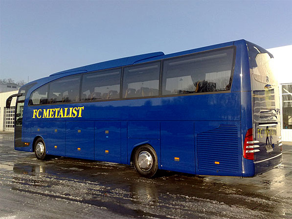 Новый автобус, 5-звёздочный по своему уровню комфортности, приобрел для «Металлиста» его президент Александр Ярославский. Цветовая гамма лайнера выдержана в тонах футбольного клуба – жёлто-синих. Солидной является не только марка автобуса – «Mercedes-Benz» Travego, но и его «начинка». Люксовые сидения, кондиционирование и освещение, кухня с микроволновой печью, кофеваркой и холодильником, плазменные экраны и DVD-плеер – все это позволит футболистам и тренерскому составу преодолевать длительные переезды значительно легче и комфортнее.