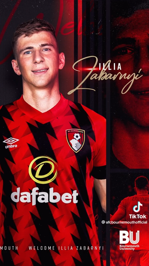 Английский клуб «Борнмут» в TikTok опубликовал видео, в котором презентовал украинского центрбека Илью Забарного.