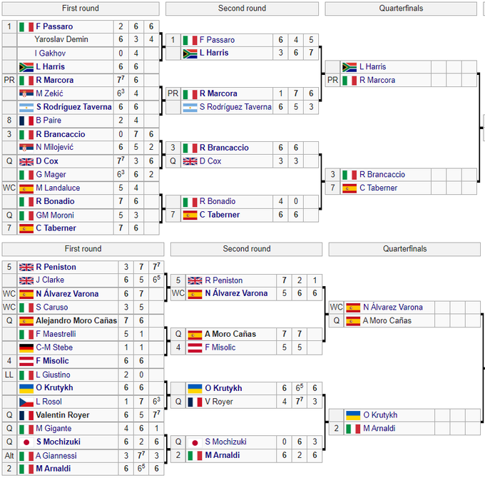 На стадии 1/4 финала Крутых сыграет против итальянца Маттео Арнальди, сеяного под 2-м номером.