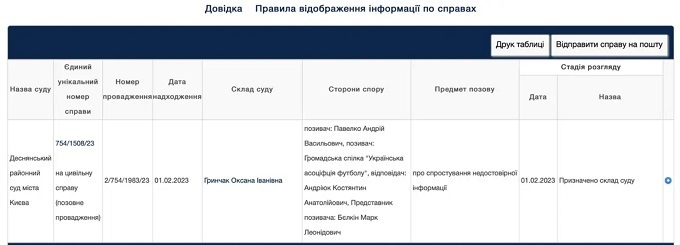 Дело с номером производства 754/1508/23 появилось в реестре на сайте Единого контакт-центра судебной власти Украины. Предмет иска: «Об опровержении недостоверной информации».