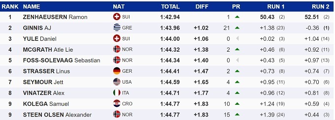 Вторым стал грек американского просихождения Эй Джей Гиннис. Он принес Греции первый в истории подиум на горнолыжном Кубке мира. Топ-3 замкнул еще один швейцарец, Даниэль Юле.