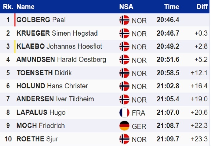 Норвежский лыжник Пол Гулберг выиграл разделку свободным стилем на этапе Кубка мира в итальянском Тоблахе. Он опередил партнеров по команде Симена Хегстада Крюгера и лидера Кубка мира Йоханнеса Клэбо. Сборная Норвегии заняла первые семь мест.
