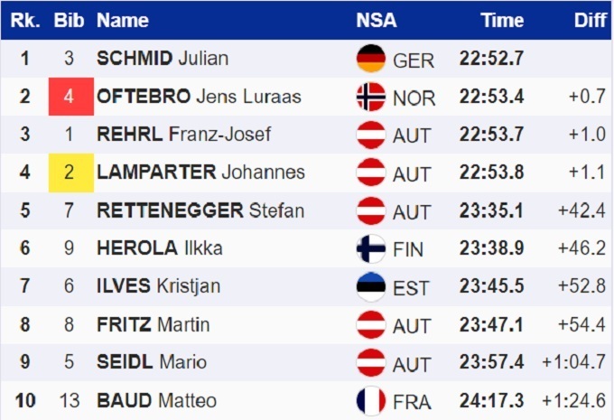 Немецкий двоеборец Юлиан Шмид выиграл второй личный старт на домашнем этапе Кубка мира в Оберстдорфе. Он опередил норвежца Йенса Луроса Офтебро и австрийца Франца Йозефа Рерля. Лидер Кубка мира, Йоханнес Лампартер, занял четвертое место.