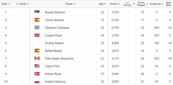 Топ-10 рейтинга ATP