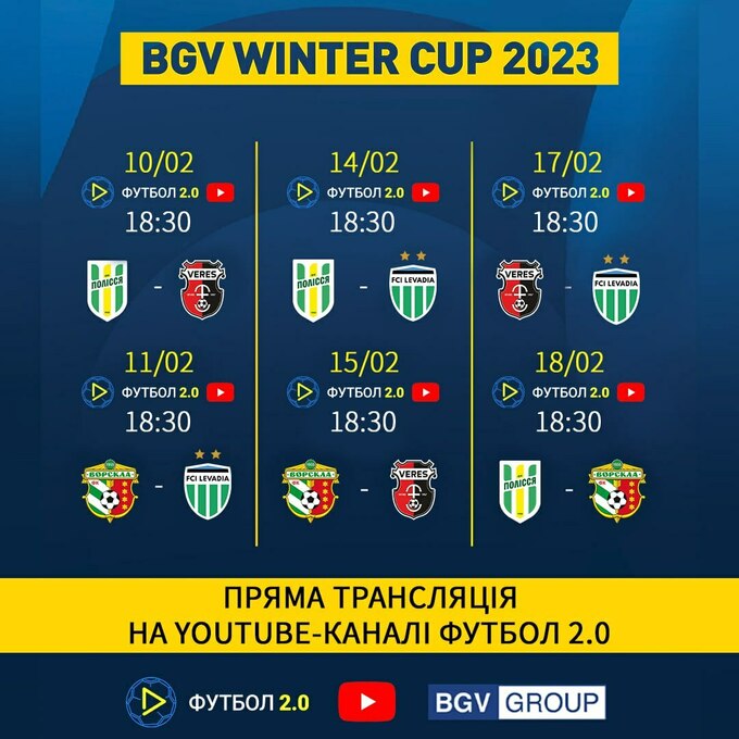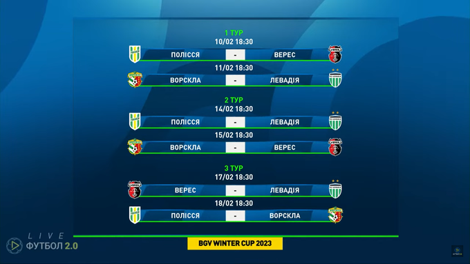 Напомним, участие в Winter Cup 2023 примут клубы «Полесье» Житомир, «Верес» Ровно, «Ворскла» Полтава и эстонская «Левадия».