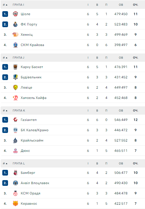В четвертьфинале 8 и 15 марта «Будивельник» сыграет против победителя группы I. Им стал французский «Шоле», обыгравший в последнем туре португальский «Порту».