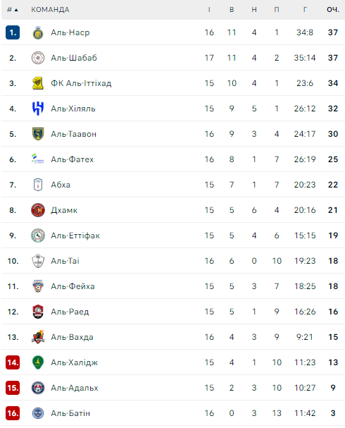 Благодаря этой победе «Аль-Наср» вышел на первое место в турнирной таблице (37 очков после 16 игр).
