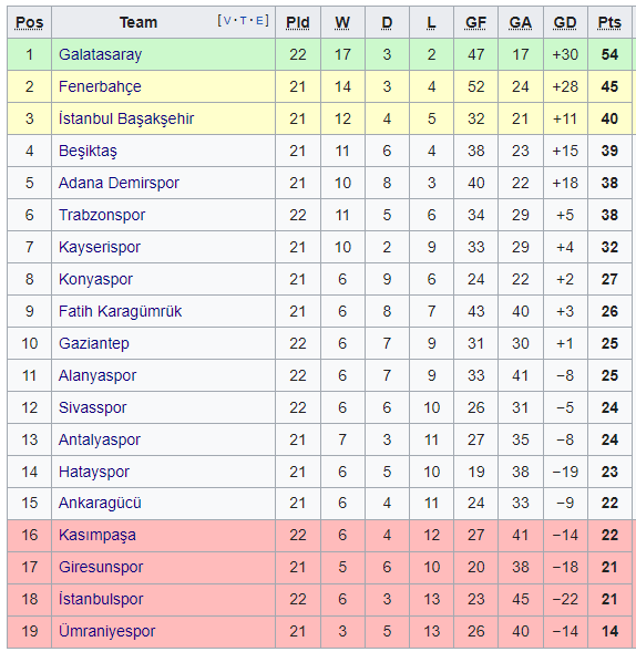 После 21 тура турецкой Суперлиги «Хатайспор» занимает 14-е место в турнирной таблице.