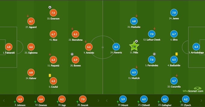 Из четырех игроков, которые выходили у «Челси» на замену, выше, чем у Мудрика, оценка только у Бена Чилвелла.
