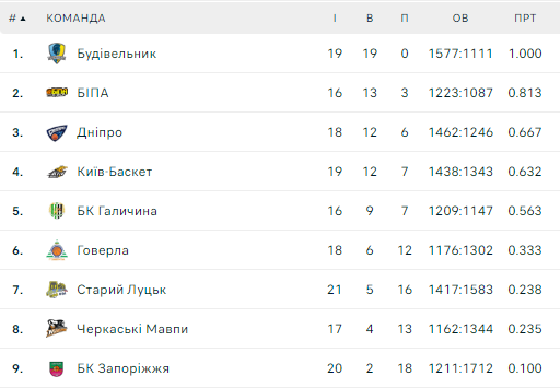 - Будивельник – Киев-Баскет – 77:57 (25:12, 24:17, 16:13, 12:15), матч прерван в 4-й четверти