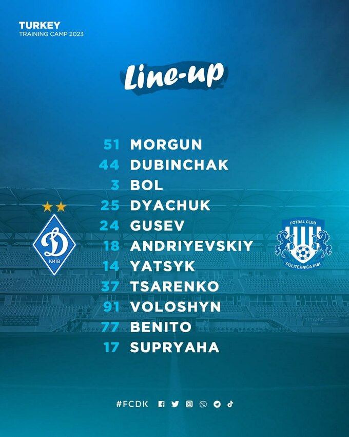 В воскресенье, 12 февраля, состоится товарищеский матч между киевским «Динамо» и румынской командой «Политехника Яссы».