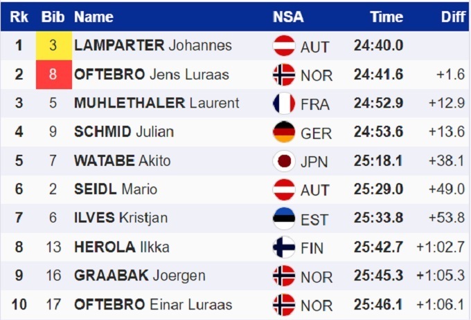 Лидер Кубка мира Йоханнес Лампартер выиграл второй личный старт на этапе Кубка мира в немецком Шонахе. Он опередил вчерашнего победителя Йенса Луроса Офтебро и француза Лорана Мюлеталера.