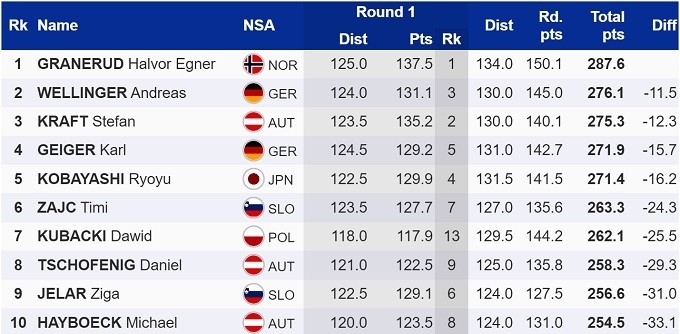 Гранеруд опередил вчерашнего победителя, немца Андреаса Веллингера, и австрийца Штефана Крафта.
