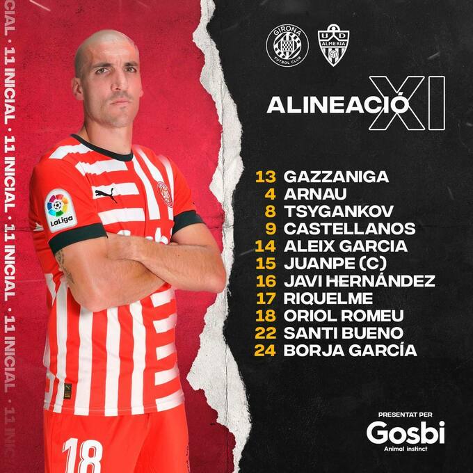 Состав «Жироны»: Гассанига, Эрнандес, Хуанпе, Буэно, Мартинес, Рикельме, Ромеу, Гарсия, Цыганков, Кастельянос, Гарсия