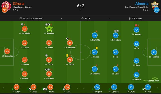 В пятницу, 17 февраля, состоялся матч 22-го тура чемпионата Испании по футболу между «Жироной» и «Альмерией». Игра завершилась со счетом 6:2 в пользу команды из Каталонии.