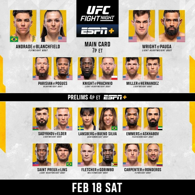 В ночь с 18 на 19 февраля в американском Энтерпрайзе (штат Невада) проходит турнир по смешанным единоборствам UFC Fight Night 219.