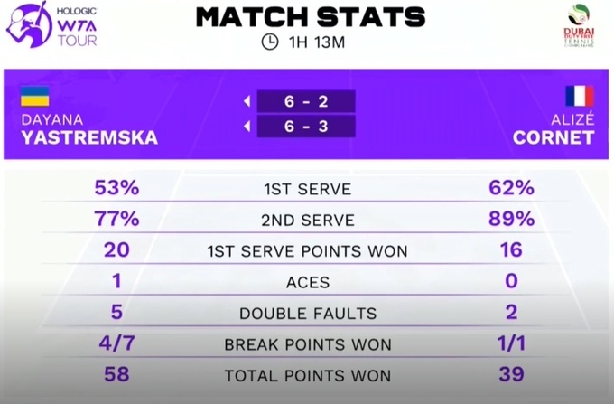 Украинская теннисистка Даяна Ястремская (№99 WTA) успешно начала выступления в основе турнира WTA 1000 в Дубае.