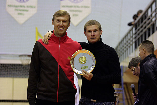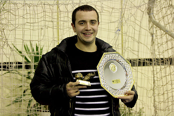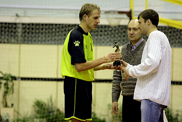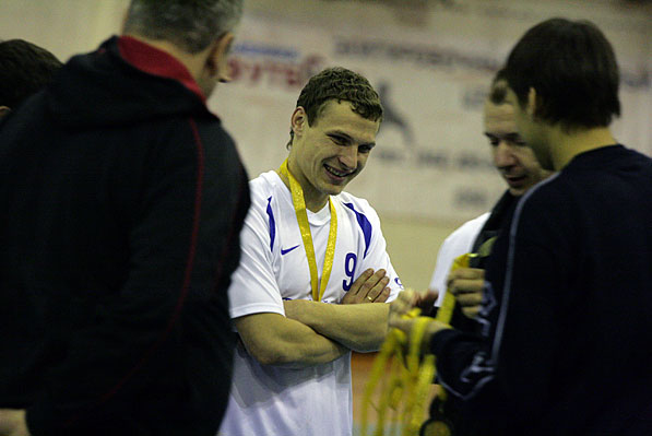 Сергей Мельник получает шикарную статуэтку лучшего бомбардира Футзальной Премьер-лиги