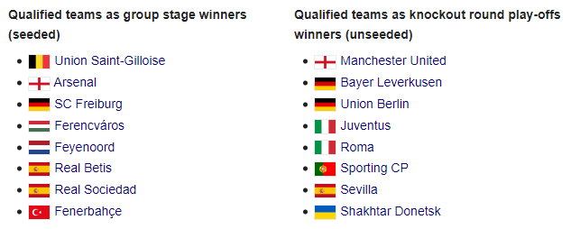 Победители групп Лиги Европы ответные матчи проведут дома. Поединки 1/8 финала пройдут 9 и 16 марта.