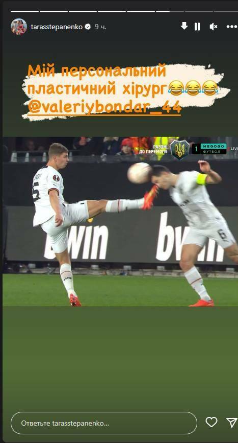 Хавбек «Шахтера» Тарас Степаненко выложил фото из матча против «Ренна» в 1/16 финала Лиги Европы.