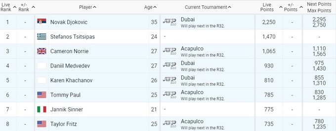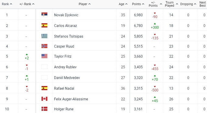 Американец Тейлор Фритц дождался снятия очков за прошлогодние победы у Рублева и Надаля и дебютировал в топ-5 мировой классификации.