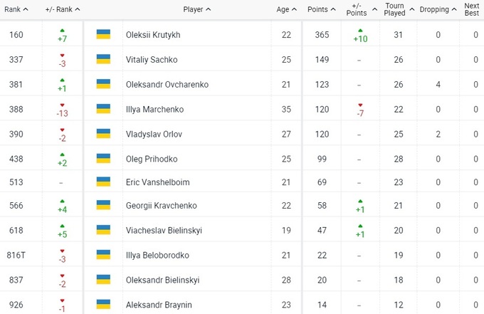 Лучший из украинцев Алексей Крутых снова обновил личное достижение, поднявшись еще на 7 позиций. У остальных небольшие изменения в разные стороны, но ничего существенного.