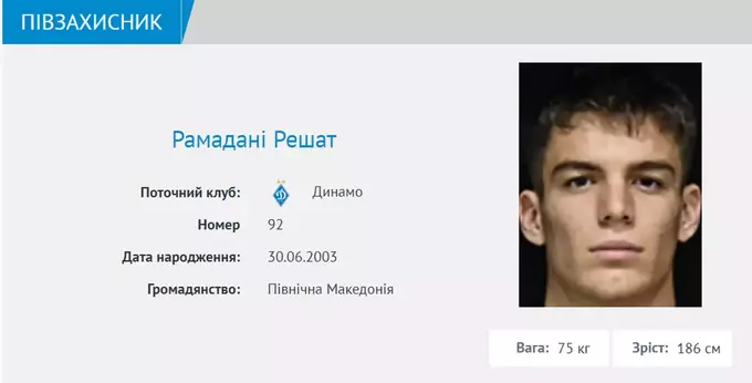 Киевский футбольный клуб «Динамо» заявил на сезон 2022/23 19-летнего опорного полузащитника из Македонии Решата Рамадани.