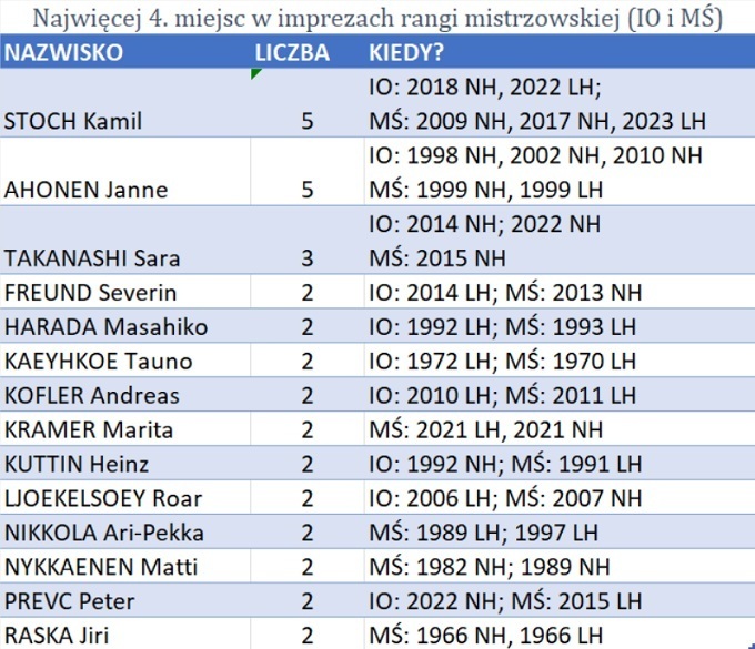 Борьба за бронзу получилась чисто польской: Давид Кубацки опередил Камила Стоха. Свою медаль поляк, безусловно, заслужил – хотя бы тем, как достойно в первой попытке справился с сильным попутным ветром, чего его партнеры по несчастью, Ланишек, Гранеруд и Крафт, сделать не смогли. А Стох опять остался с «деревянной медалью». Уже в пятый раз за карьеру в личных стартах на титульных турнирах. По этому показателю он делит рекорд с другой легендой прыжков, финном Янне Ахоненом: