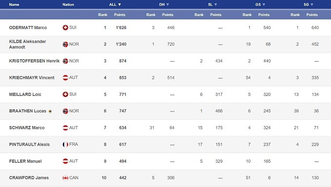 В субботу компанию на подиуме им составил Джеймс Кроуфорд – канадец подтвердил неслучайность своего сенсационного золота на чемпионате мира. А в воскресенье вторым стал Андреас Зандер, который проиграл Одерматту всего 0,05 секунды. В 33 года немец таки добрался до первого в карьере подиума на Кубке мира, хотя радом с пьедесталом бывал очень много раз.