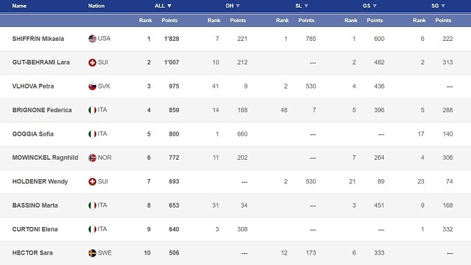 Что касается супергиганта, тот тут на финал сезона лидером едет Элена Куртони. Но разрывы тут минимальные: Лара Гут-Бехрами уступает ей всего 19 очков, Хюттер – 25, Мовинкель – 26, а Федерика Бриньоне – 44. Свежеиспеченная чемпионка мира в супергиганте Марта Бассино пропускала этап в Квитфьелле по семейным обстоятельствам: в 30-летнем возрасте внезапно умерла жена ее родного брата.