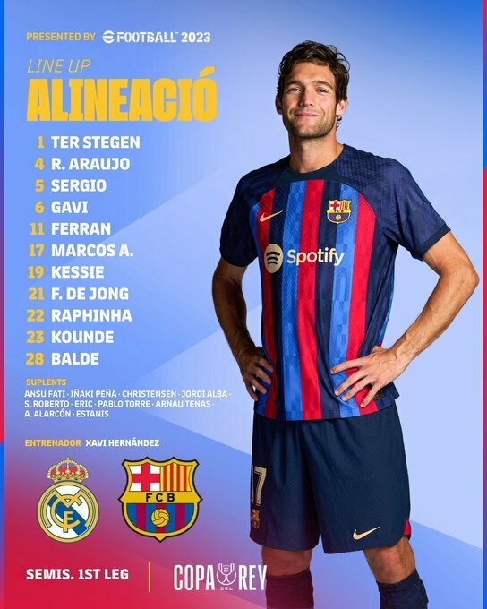 «Барселона»: Тер Штеген, Араухо, Маркос Алонсо, Кунде, Бальде, Бускетс, Гави, Кессье, Де Йонг, Ферран Торрес, Рафинья