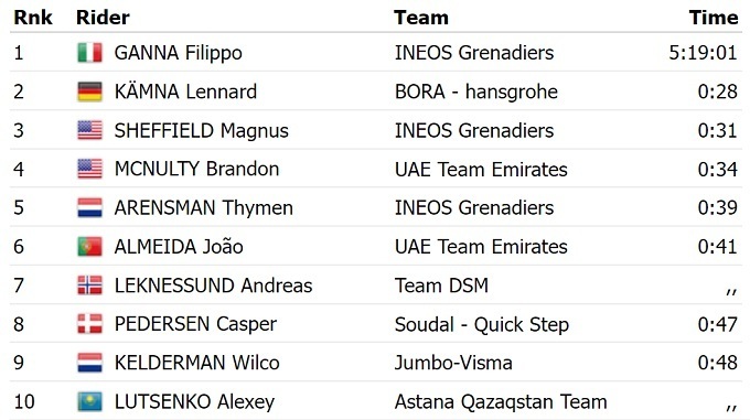 Лидерство в общем зачете сохранил победитель первого этапа, итальянец Филиппо Ганна из «Ineos Grenadiers».