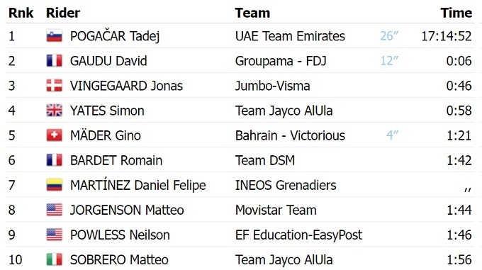 Лидерство в общем зачете сохранил победитель вчерашнего этапа, словенец Тадей Погачар из «UAE Emirates».