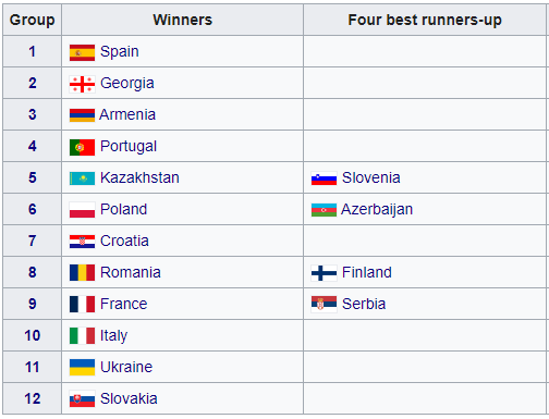 1. Украина (10 очков), 2. Нидерланды (5 очков), 3. Косово (1)
