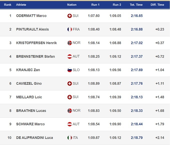 Лидер Кубка мира Марко Одерматт выиграл гигантский слалом на этапе Кубка мира в словенской Краньской Горе. Швейцарец опередил француза Алексиса Пинтуро и норвежца Хенрика Кристофферсена.