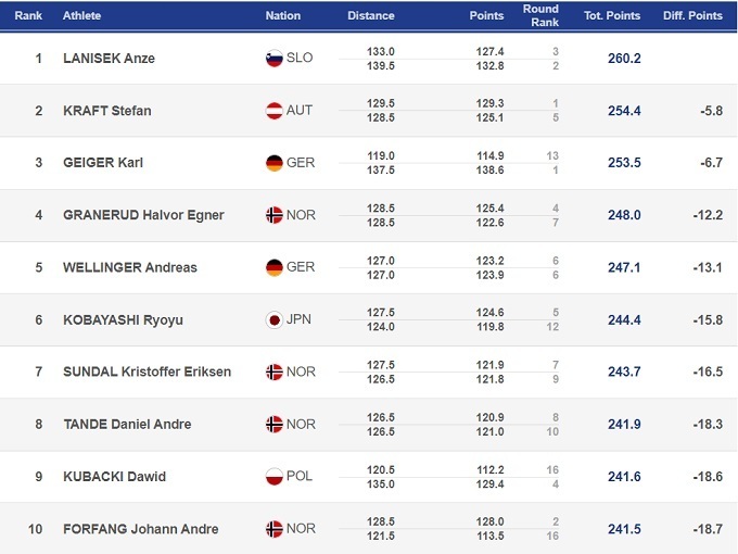 Словенский прыгун Анже Ланишек выиграл первый личный старт на этапе Кубка мира в норвежском Холменколлене, который открывал многодневку Raw Air. Словенец опередил австрийца Штефана Крафта и немца Карла Гайгера.