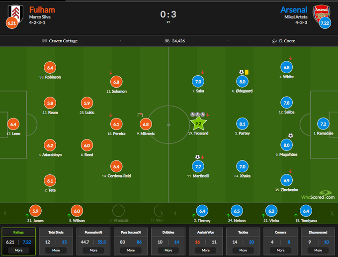 Оценки WhoScored за матч Фулхэм – Арсенал – 0:3