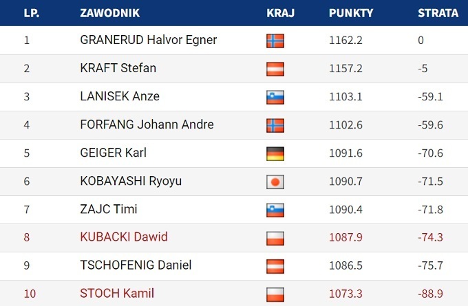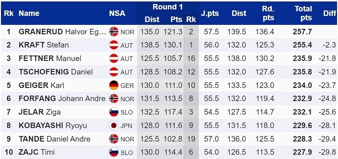 Під кінець були проблеми з вітровою обстановкою, але цього разу Гранеруд витяг по максимуму . Вдало стрибав і ветеран Фетнер, 3-є місце.