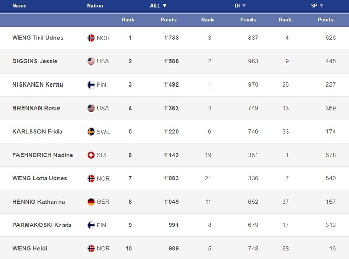 После этого в классической разделке в Фалуне Диггинс снова сумела отыграться – четвертое место, в то время как Тириль Венг лишь замкнула топ-10. После такого выступления в не самой любимой для себя дисциплине перед стартом субботнего спринта свободным стилем Диггинс считалась одним из топ-фаворитов. Однако снова разочаровала, повторив результат Драммена – вылет в четвертьфинале. Да, Венг судьбу своей соперницы повторила, но ведь это был старт, в котором Джессике необходимо было отыгрывать много очков, а в итоге – кот наплакал.